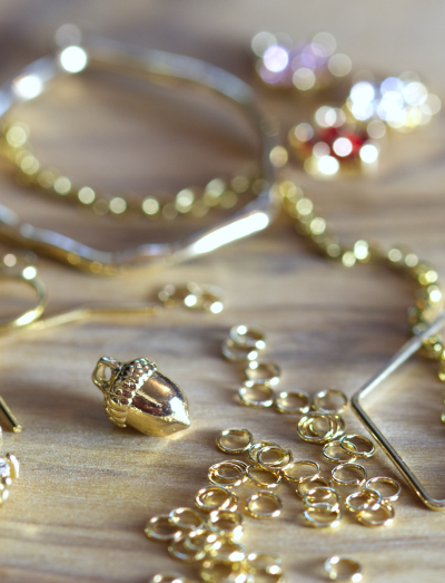 All of the findings I use in my jewellery are gold plated on a range of base metals. Most of my charms are also gold plated brass, sometimes with enamel and/or a protective coating on the gold. At my stall I have information about the materials of my charms and findings.
